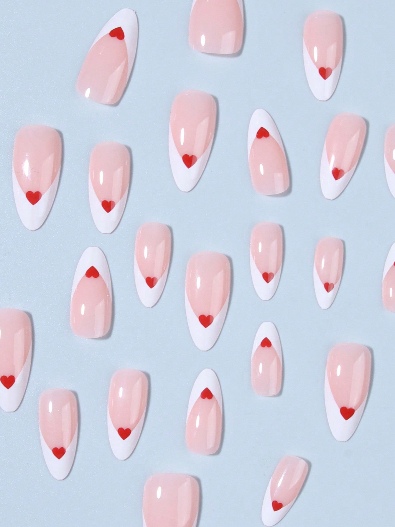 24pcs Red French Tip Almond Press On Nails