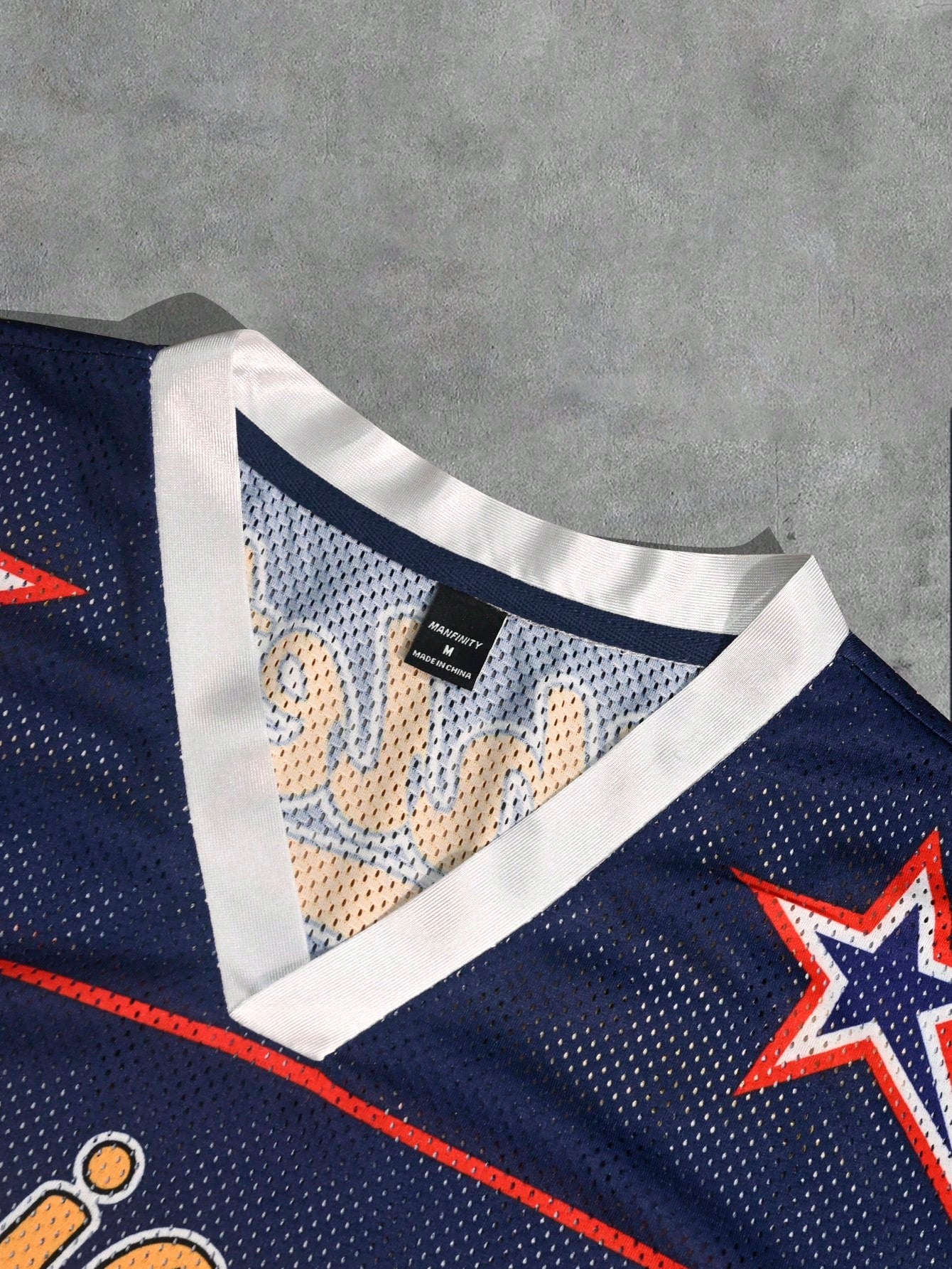 Blue V-Neck Pointelle Contrast Binding Loose Fit Jersey