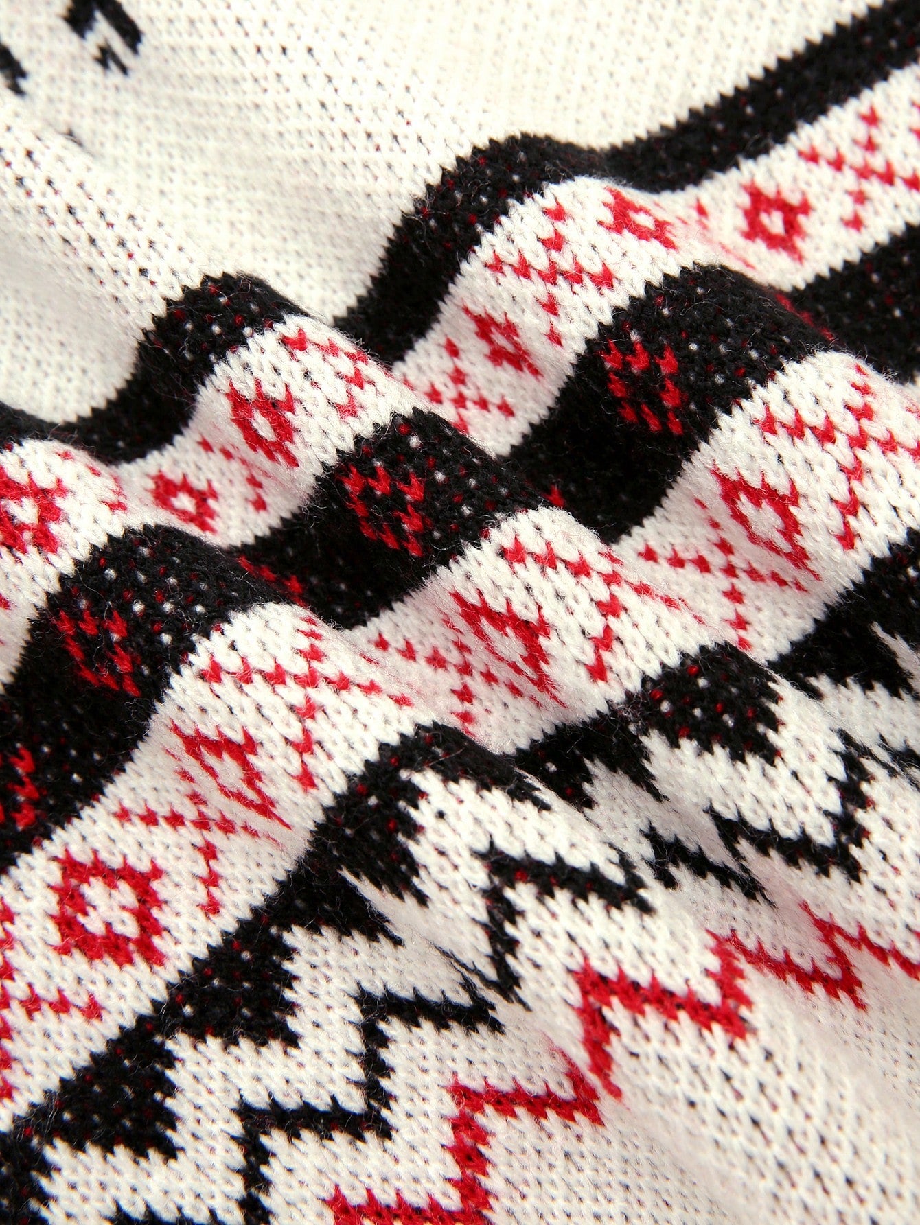 Featuring a multicolor deer and geometric intarsia pattern, this sweater instantly adds cheer to your winter wardrobe. Its vibrant red, white, and black tones create a bold yet timeless look that’s ideal for Christmas celebrations, date nights, or holiday photoshoots. The striped and animal-inspired motifs bring a playful twist to a traditional Boho/Western aesthetic, offering a perfect balance of fun and fashion.