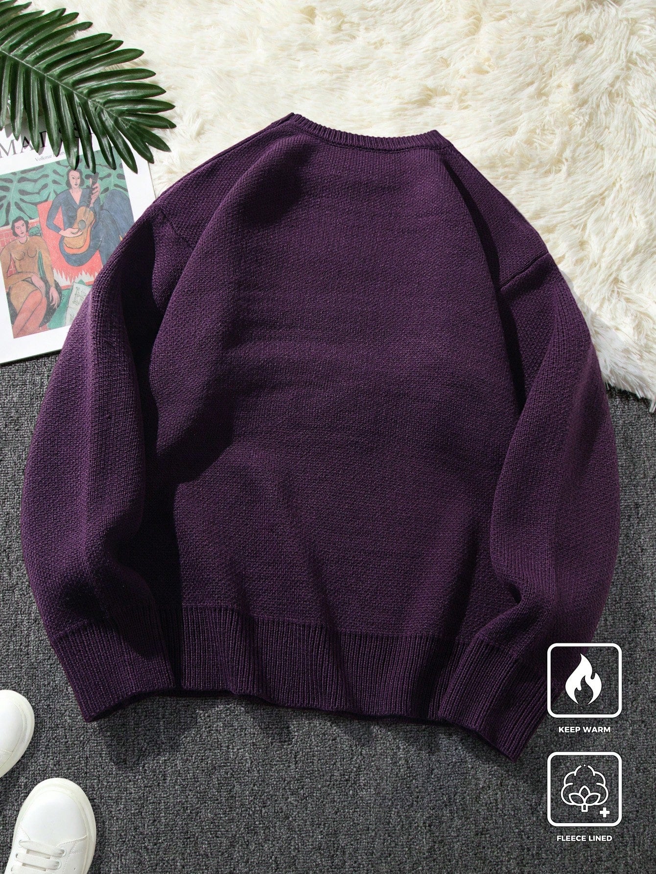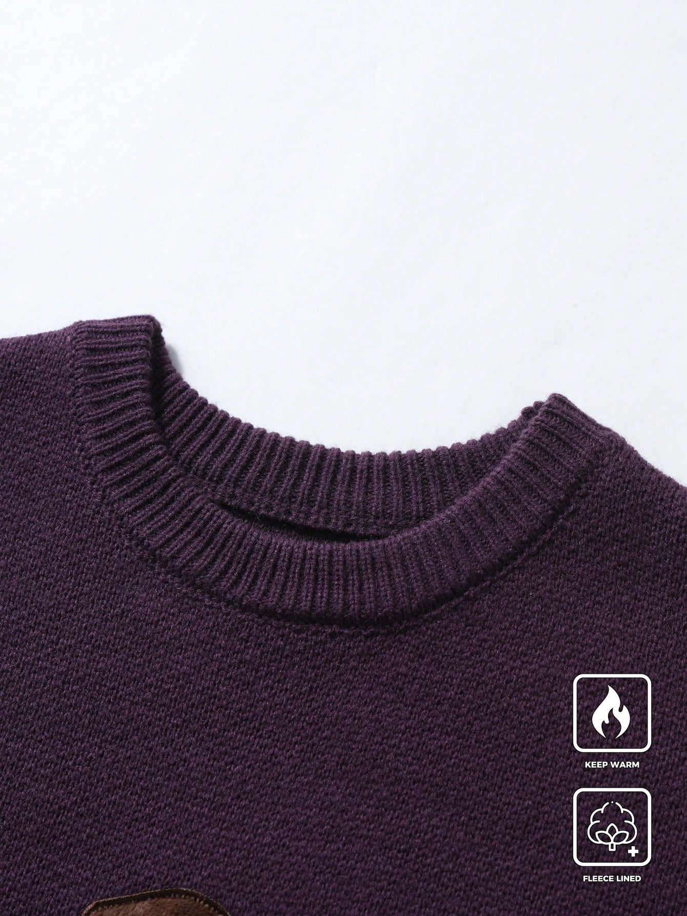 The round neck and drop-shoulder silhouette create a relaxed, laid-back aesthetic, perfect for casual settings such as school, coffee dates, or weekend outings. The purple color adds a refined touch of personality — subtle enough for daily wear, yet bold enough to make a statement. The embroidered cartoon bear stands out as a centerpiece, adding a whimsical flair that complements your fall and winter wardrobe effortlessly. Pair it with denim jeans, chinos, or corduroy trousers for a complete, season-ready outfit that balances style and warmth.
