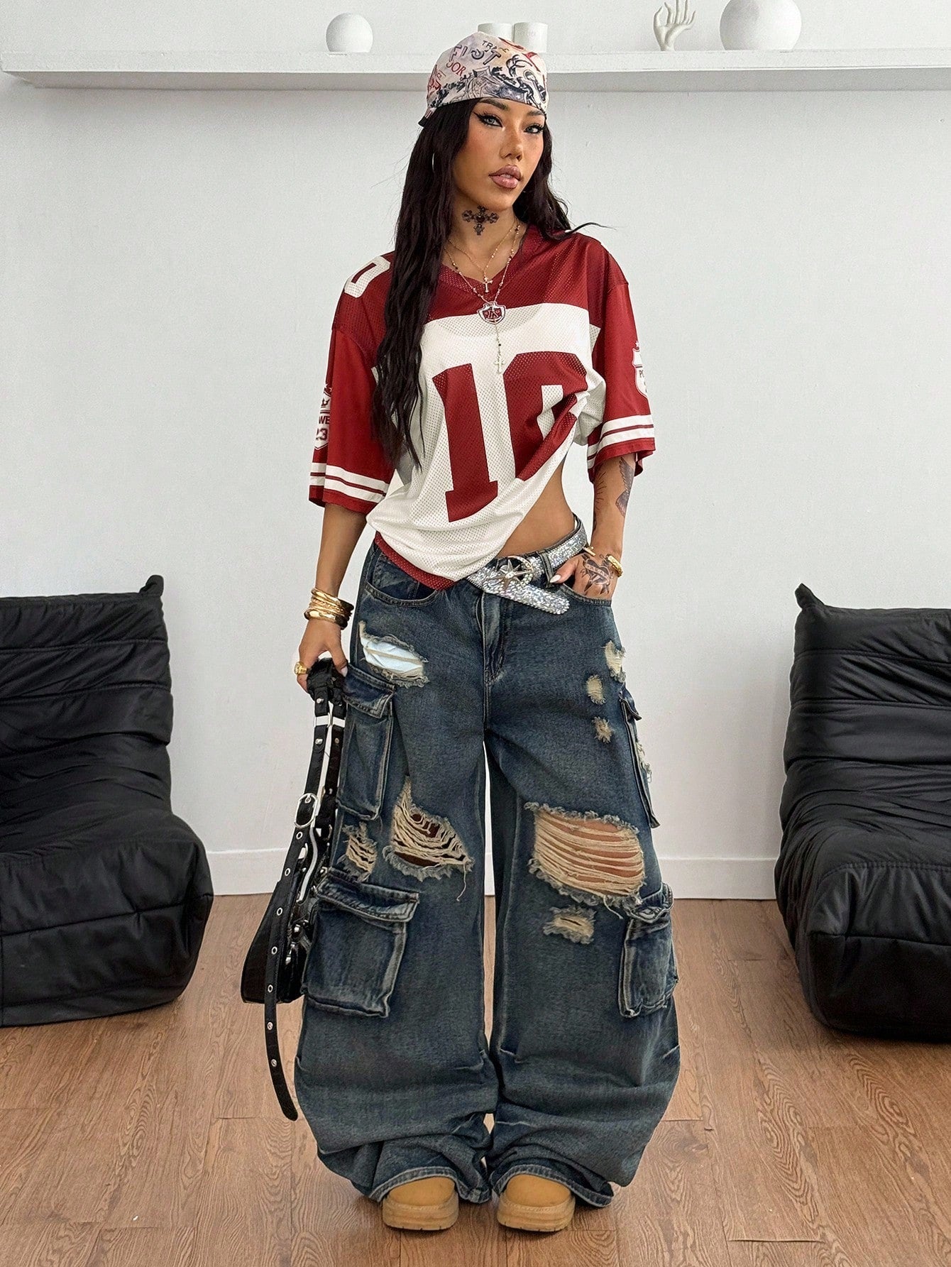 Coolane Women's Y2K Street Style Loose Mesh Jersey Tee