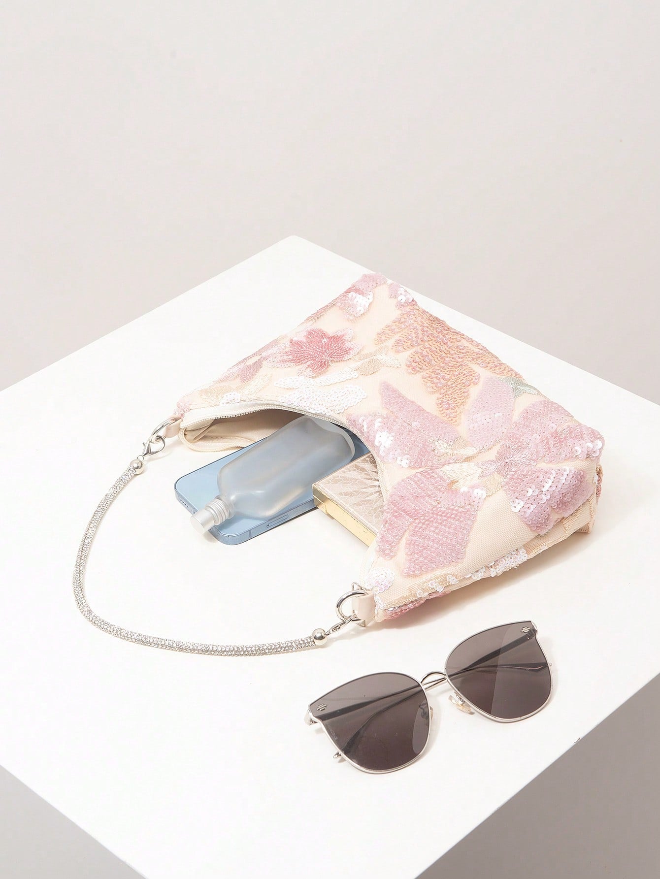 Elegant Floral Sequin Evening Bag for Bridal & Prom