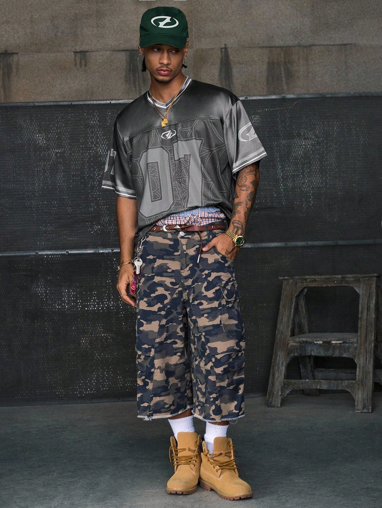 Grey Digital Print V-Neck Crop Jersey