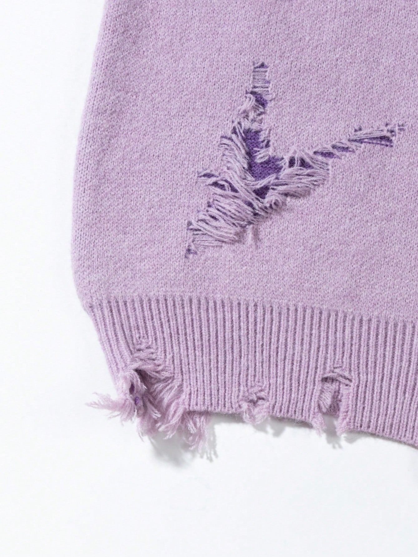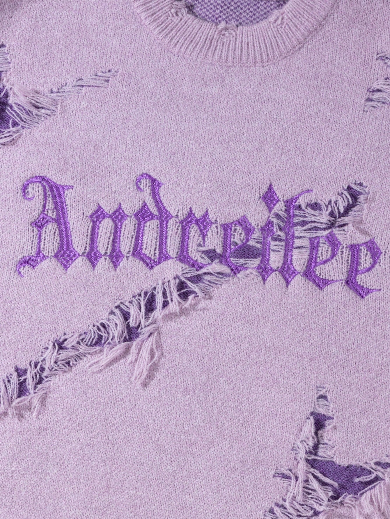 Step into the spotlight with the Letter Embroidery Distressed Ripped Casual Loose Pullover Sweater, a perfect fusion of grunge energy and avant-garde style. Crafted for those who dare to stand out, this purple knit pullover embodies the rebellious charm of Gothic street fashion, featuring strategically ripped details, raw hems, and embroidered lettering that captures attention instantly. Every tear and fray tells a story — one of confidence, edge, and individuality.