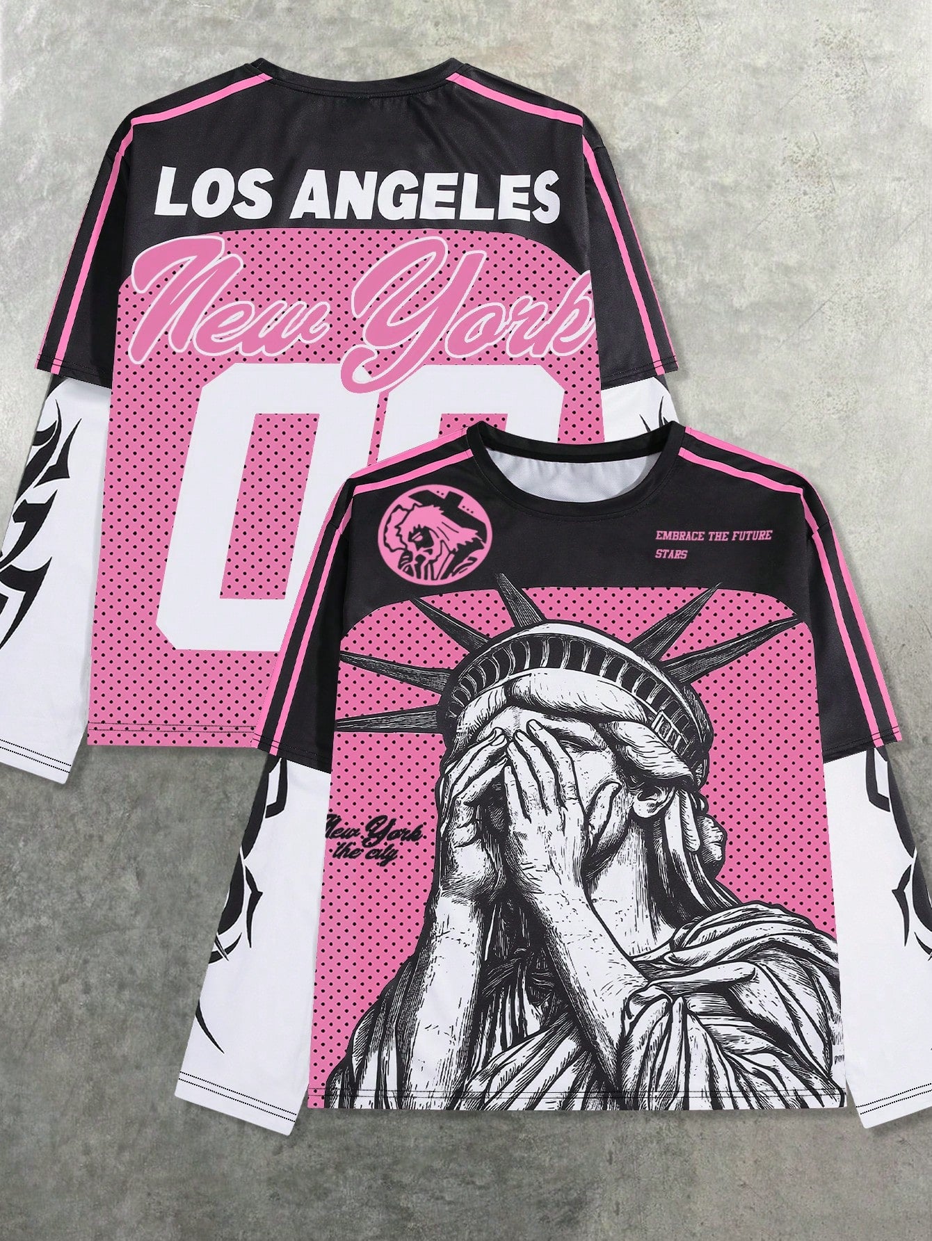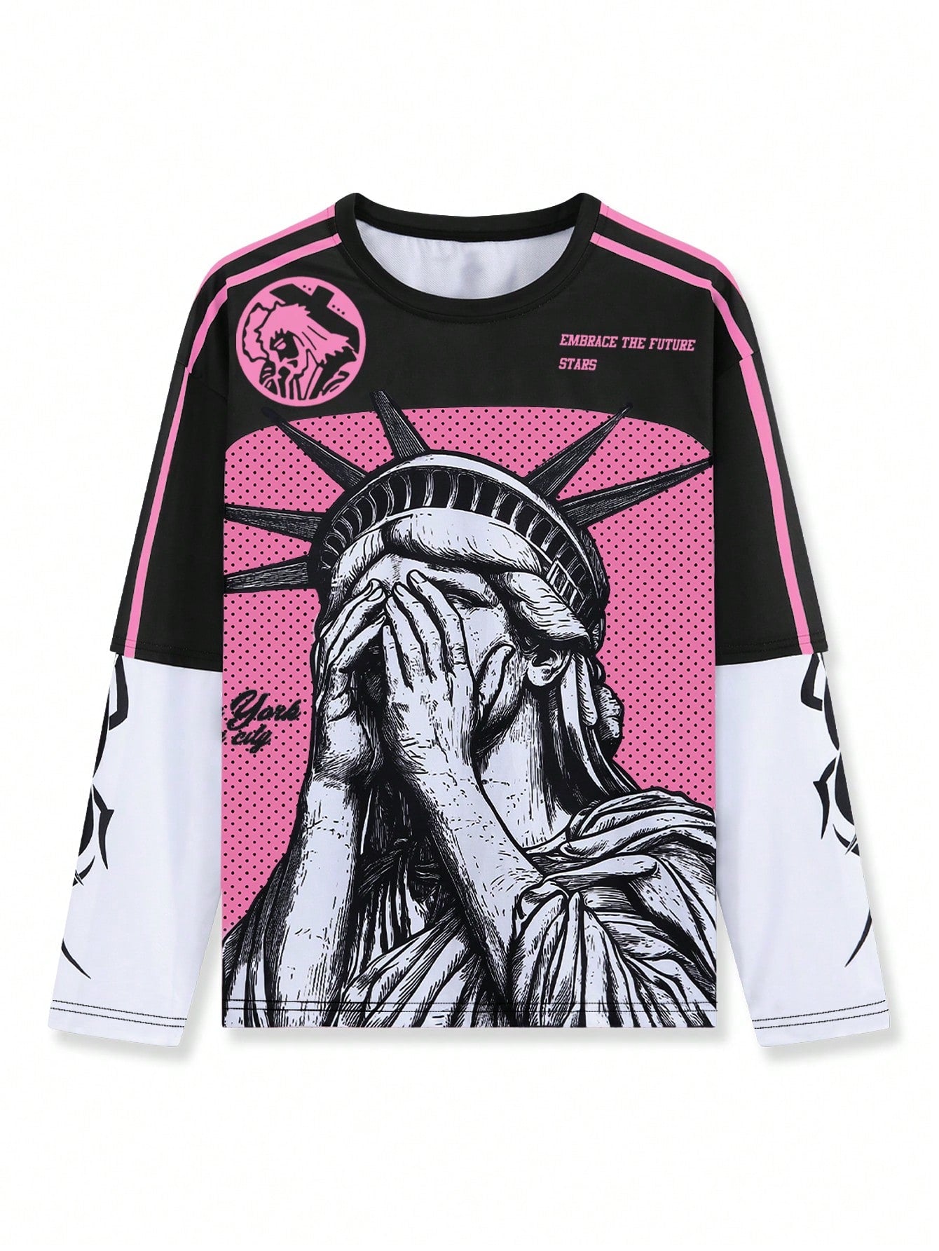 Multicolor Colorblock Round Neck Long Sleeve Tee