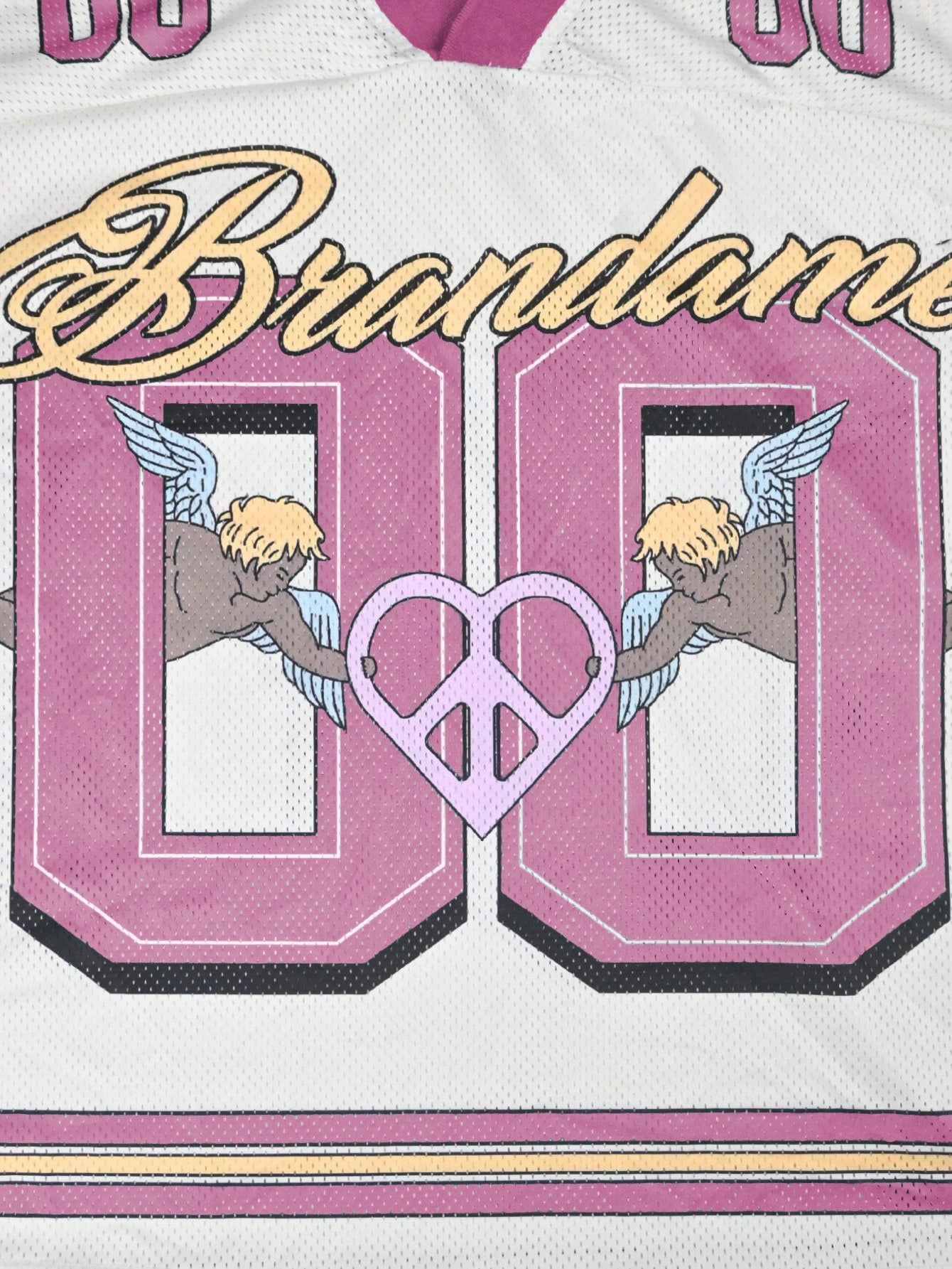 Pink Letter & Angel Print 2000s Style V-Neck Soccer Jersey