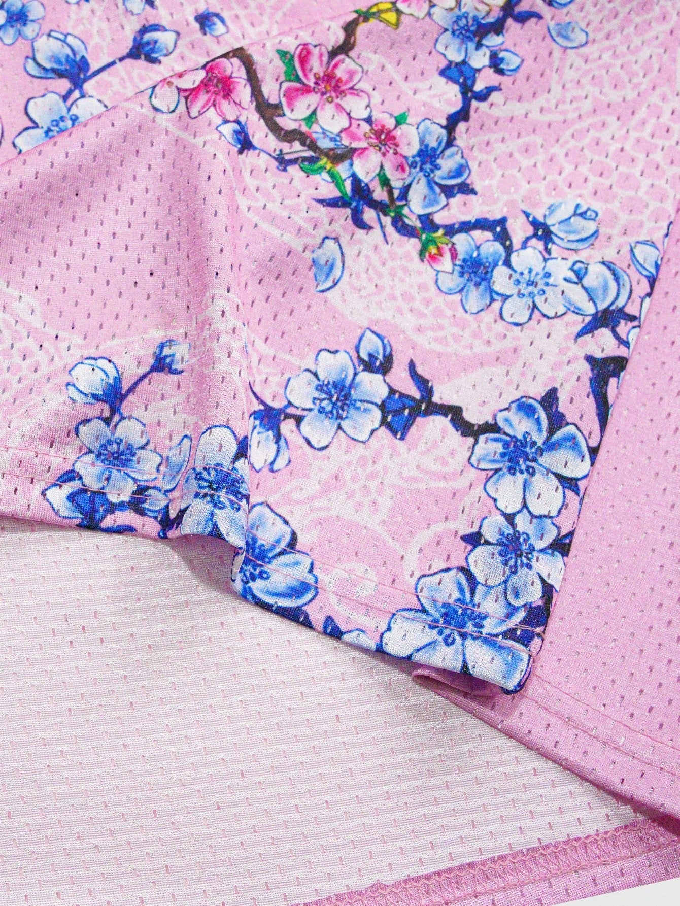 Pink Letter Striped & Plant Print V-Neck Soccer Jersey