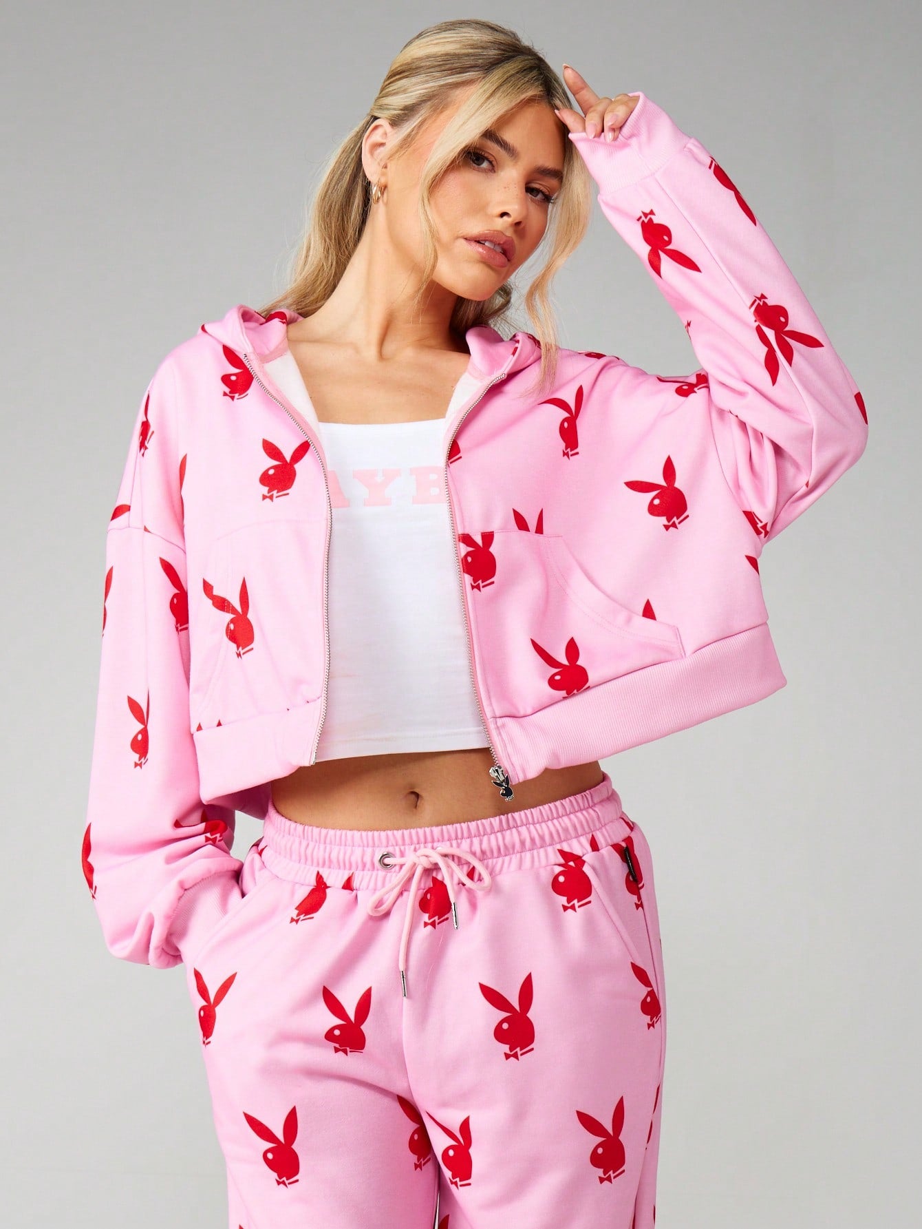 Playboy Bunny Print Oversized Crop Hoodie