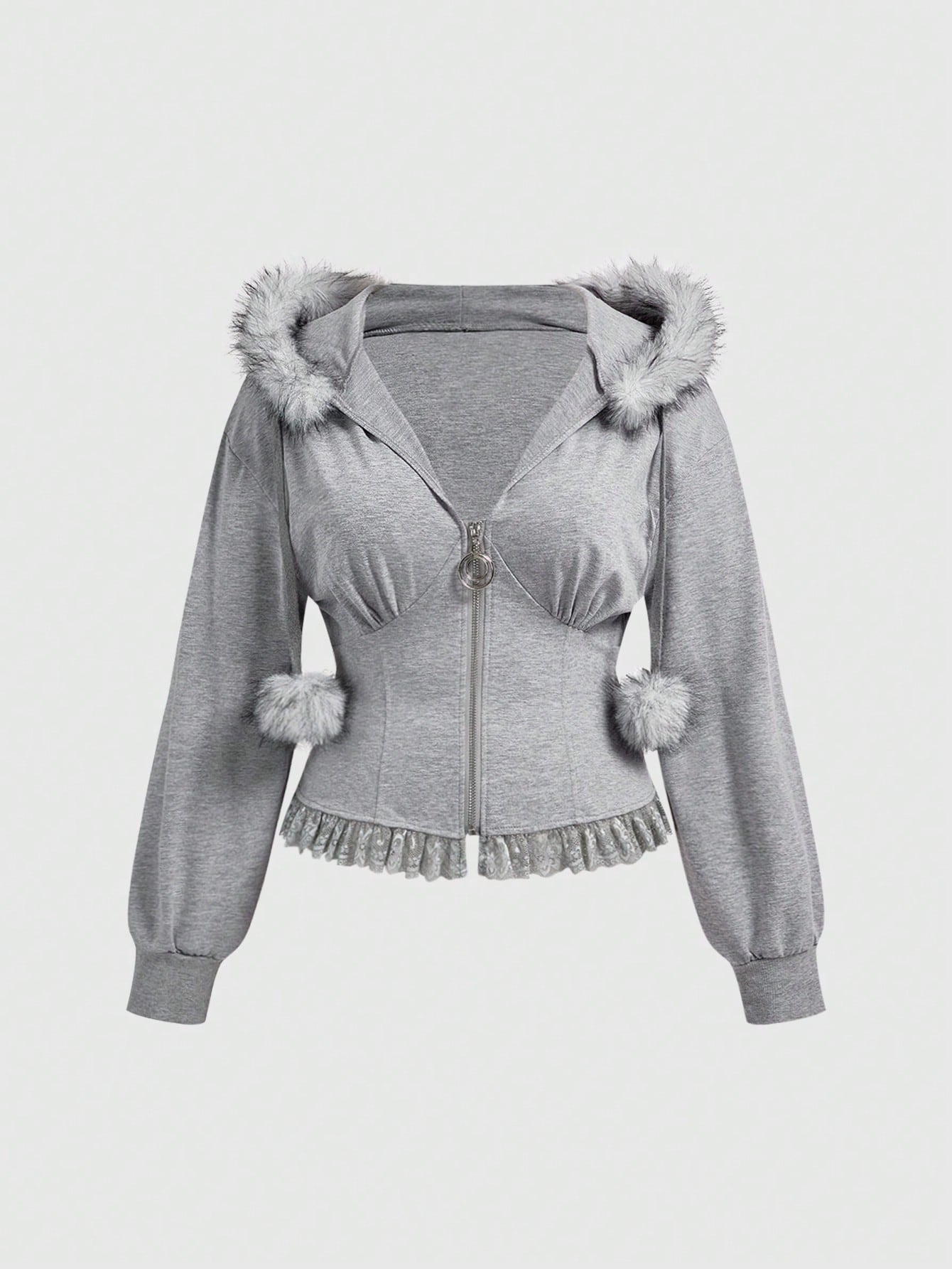 Plus Size Kawaii Fur Collar Zip-Up Hooded