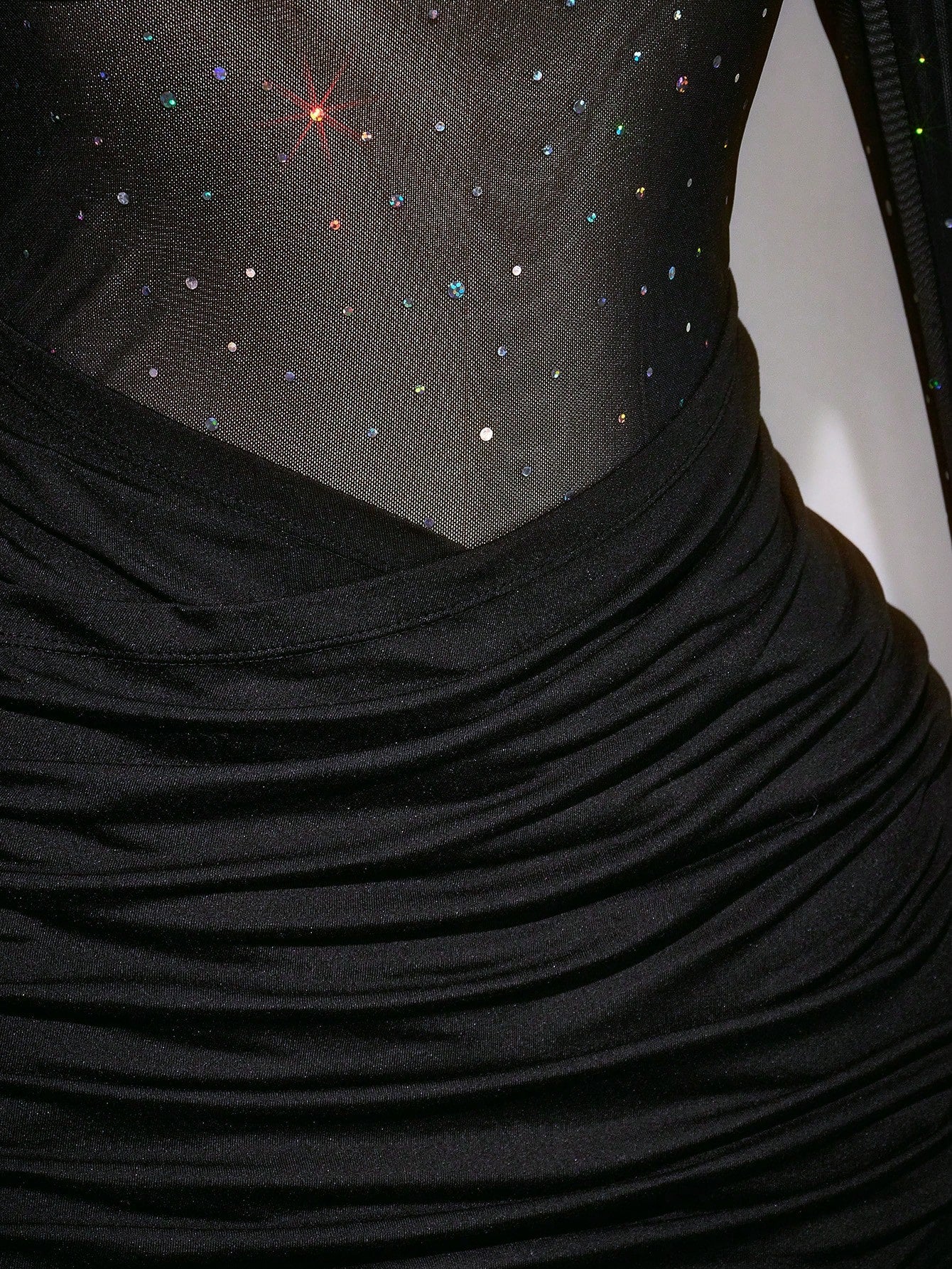 Plus Size Y2K Sequin Mesh Sheer Wrap Long Sleeve Dress