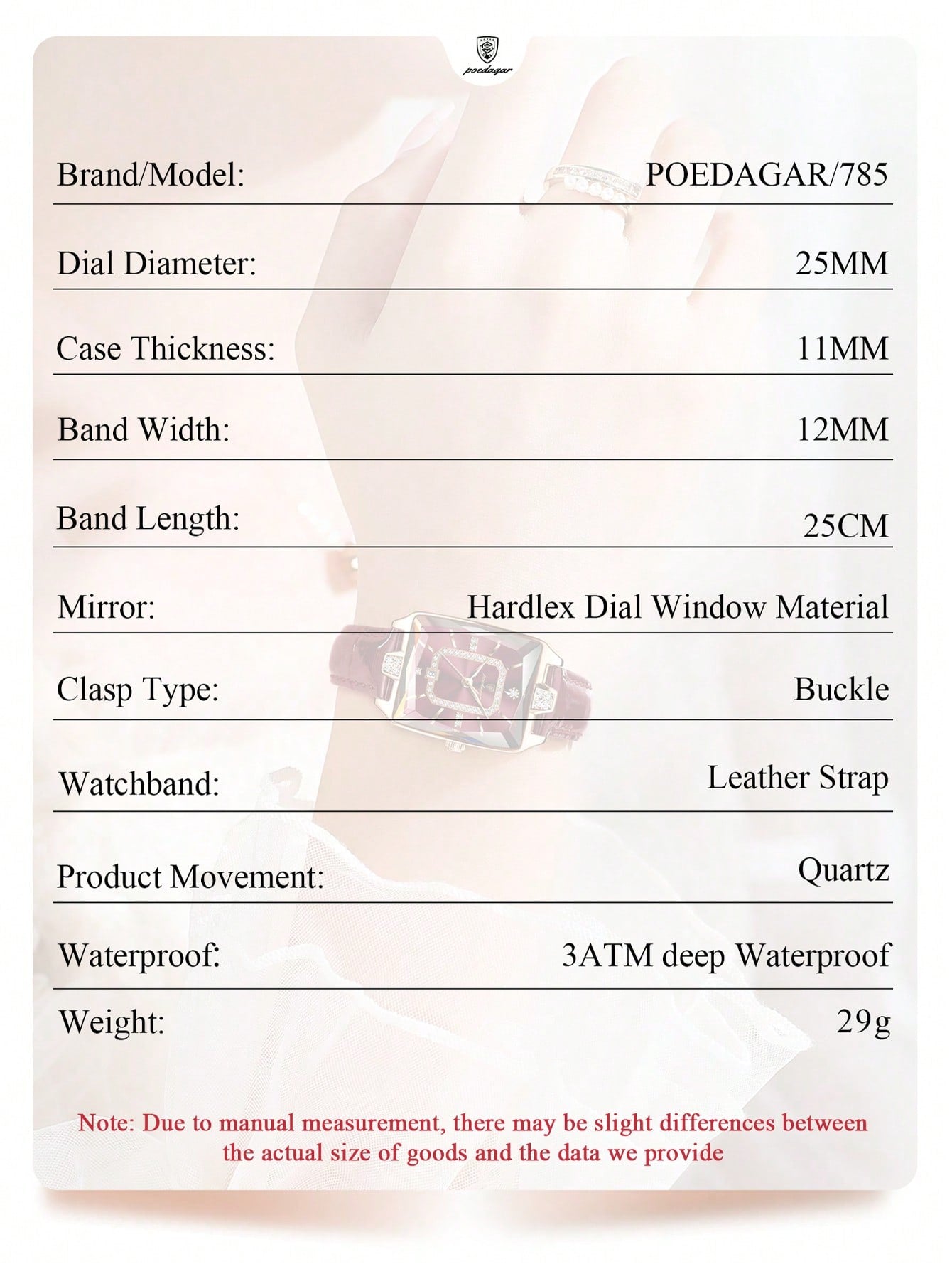 POEDAGAR Elegant Waterproof Luminous Rectangular Watch