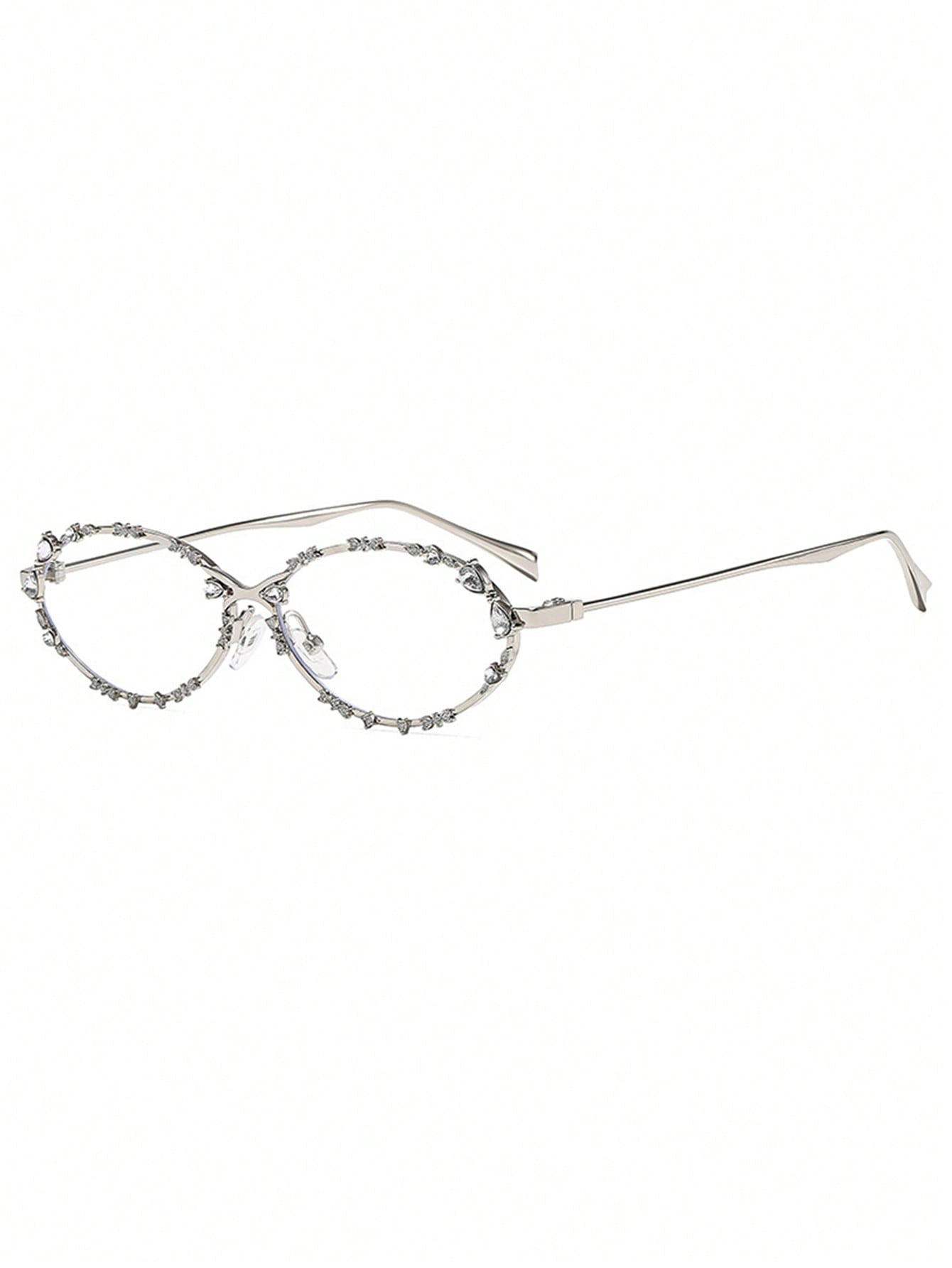Rhinestone Oval Metal Minimalist Eyeglasses Frame