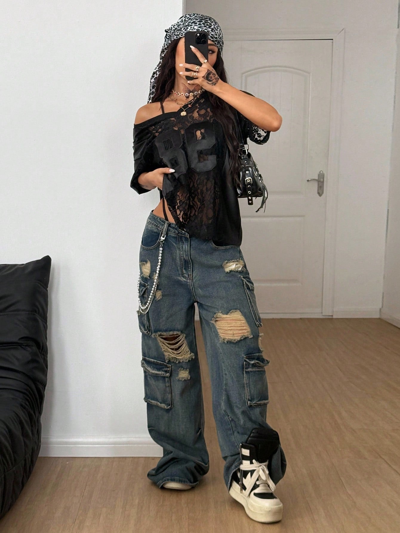 Unisex Black Oversized Knitted V-Neck Short Sleeve Top Jersey