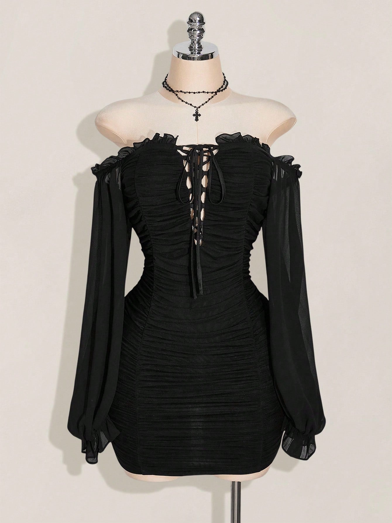 Women's Black Off-Shoulder Bodycon Mini Dress