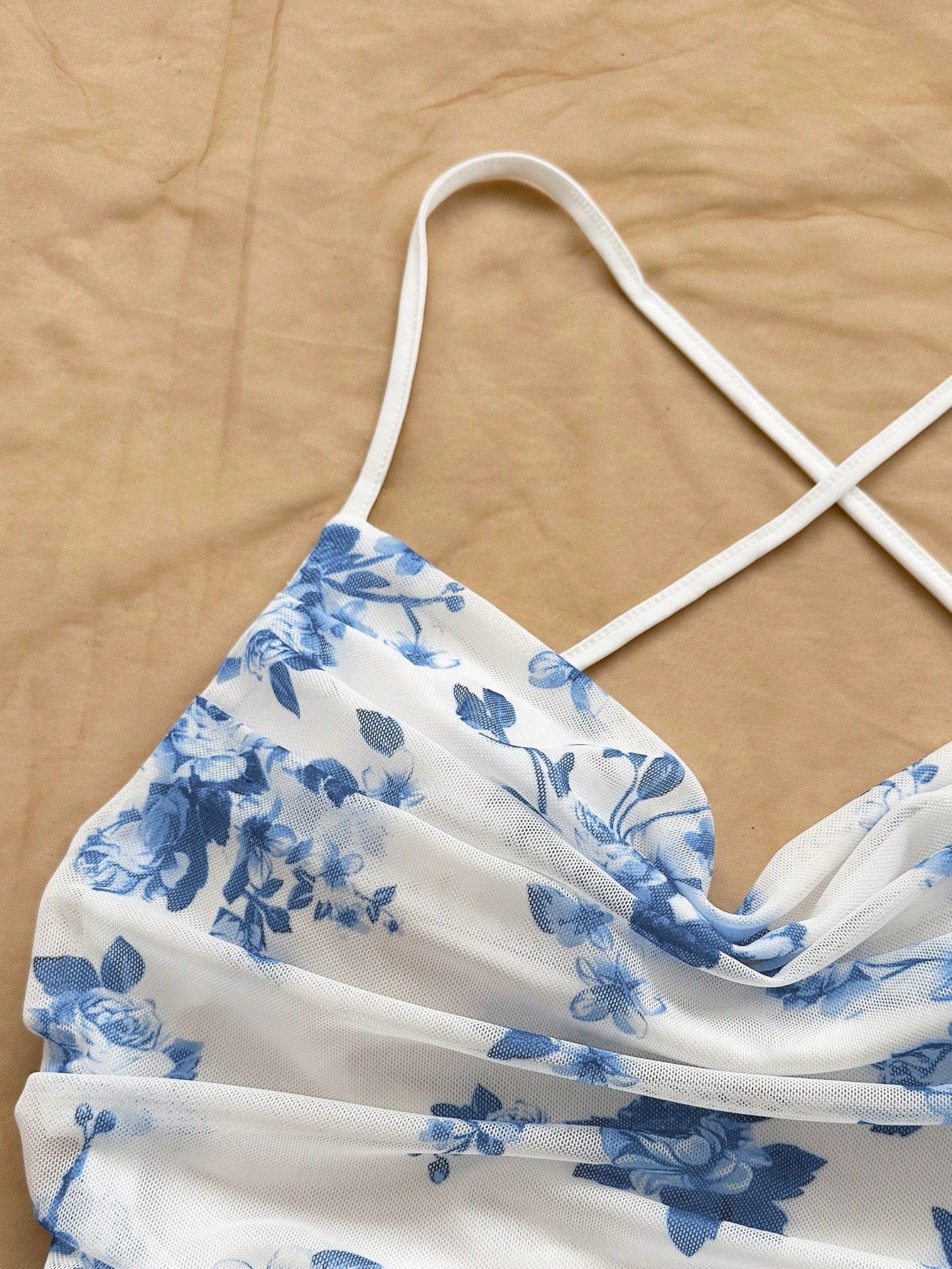 Women's Boho Multicolor Floral Spaghetti Strap Mini Dress