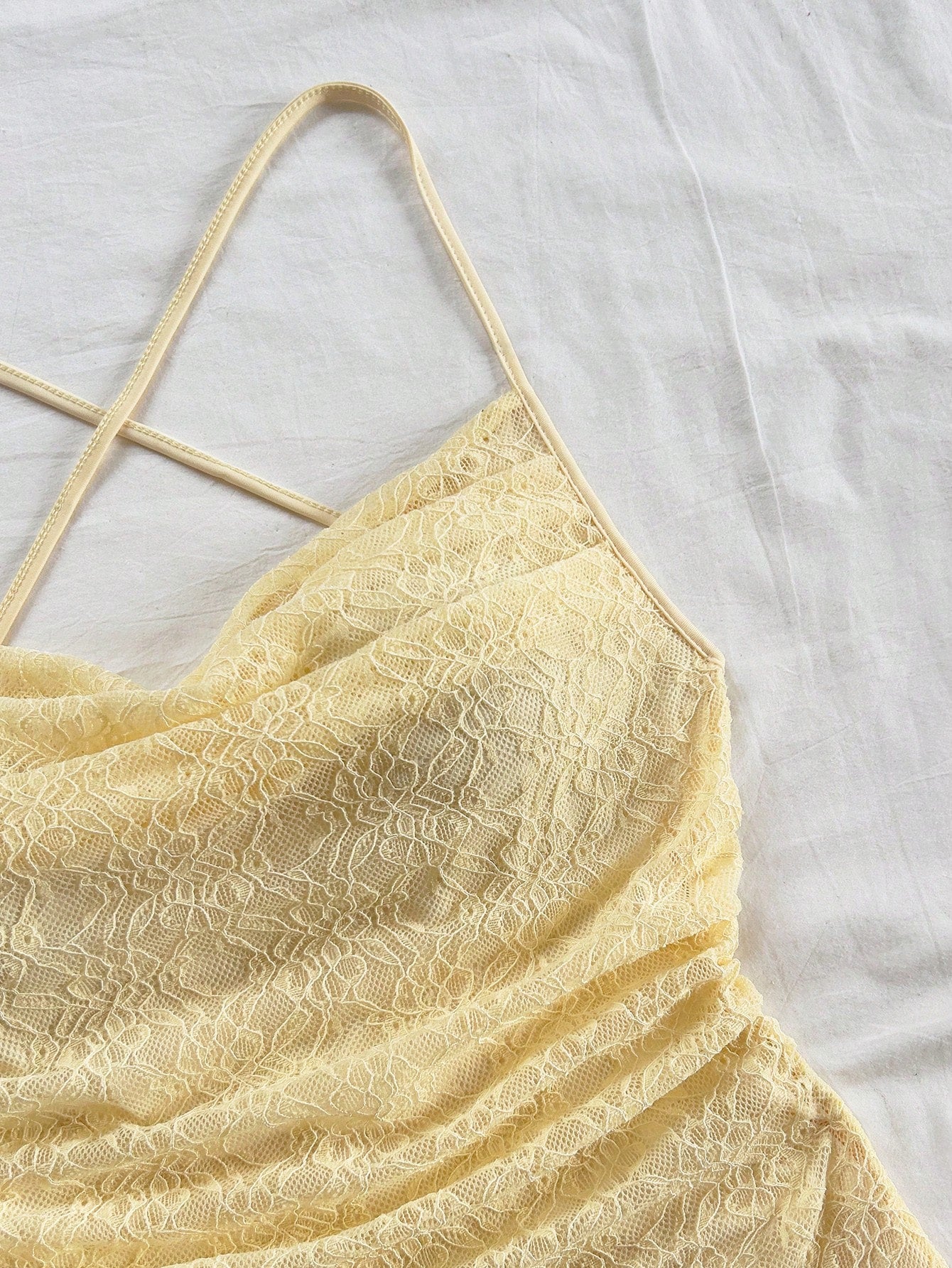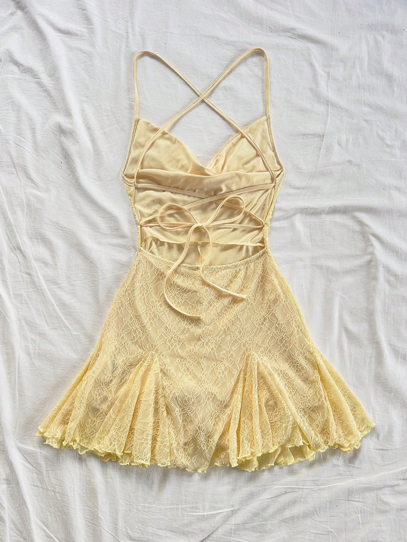 Women's Boho Yellow Lace Spaghetti Strap Mini Dress