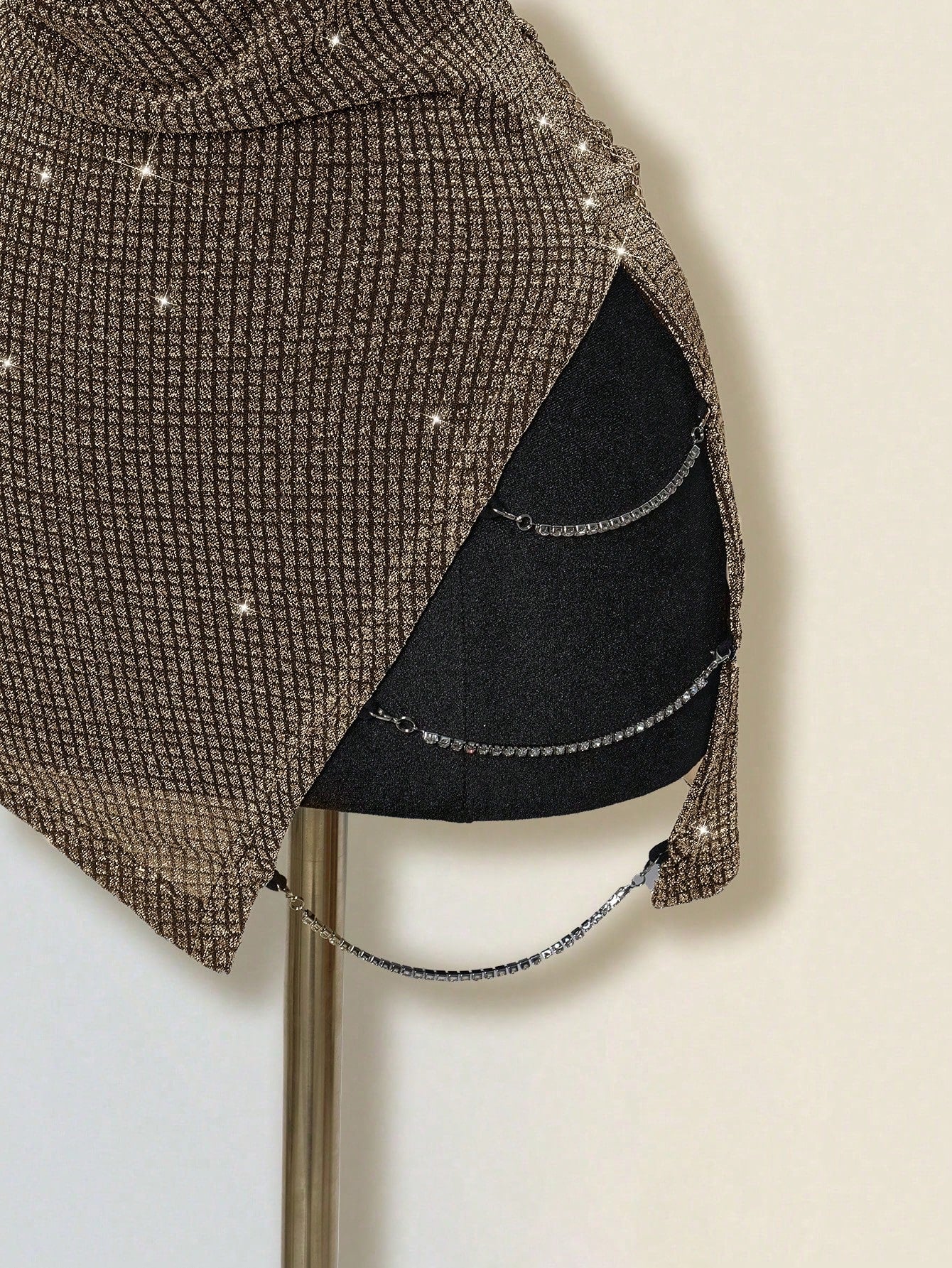 Women's Gold Asymmetrical Spaghetti Strap Mini Dress