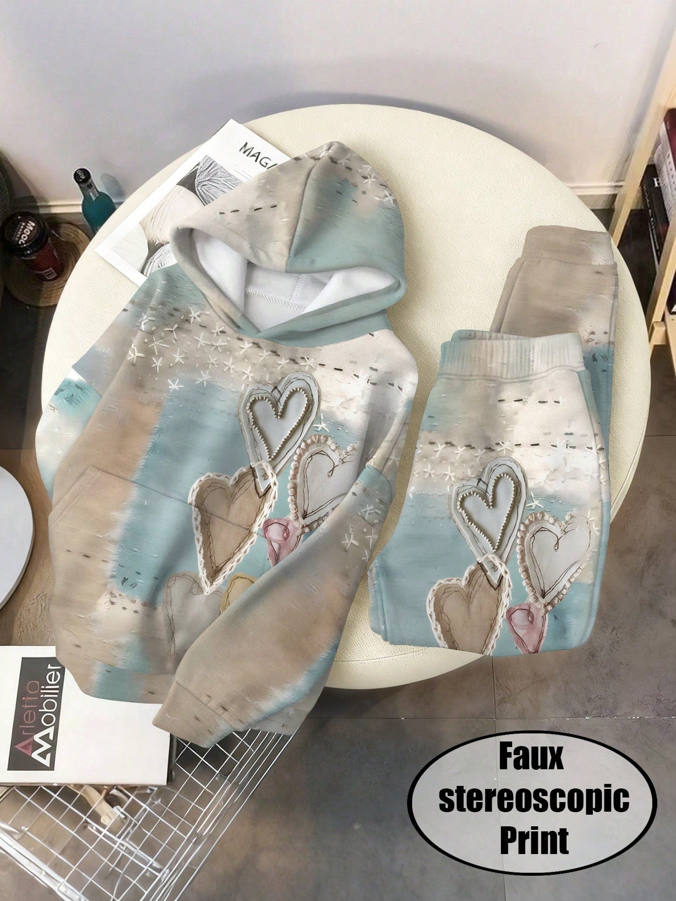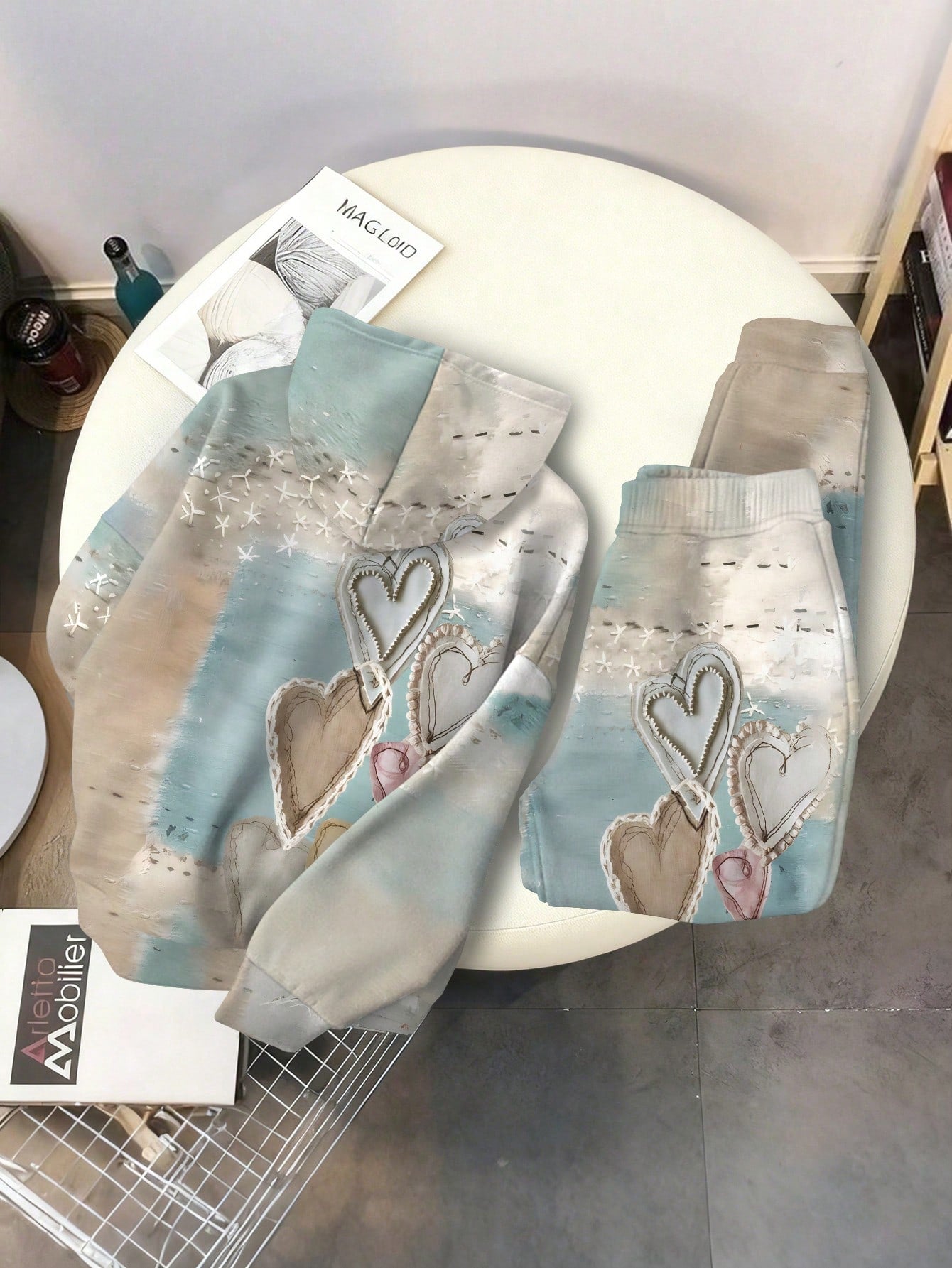 Women's Heart Print Vintage Embossed 2-Piece Hoodie