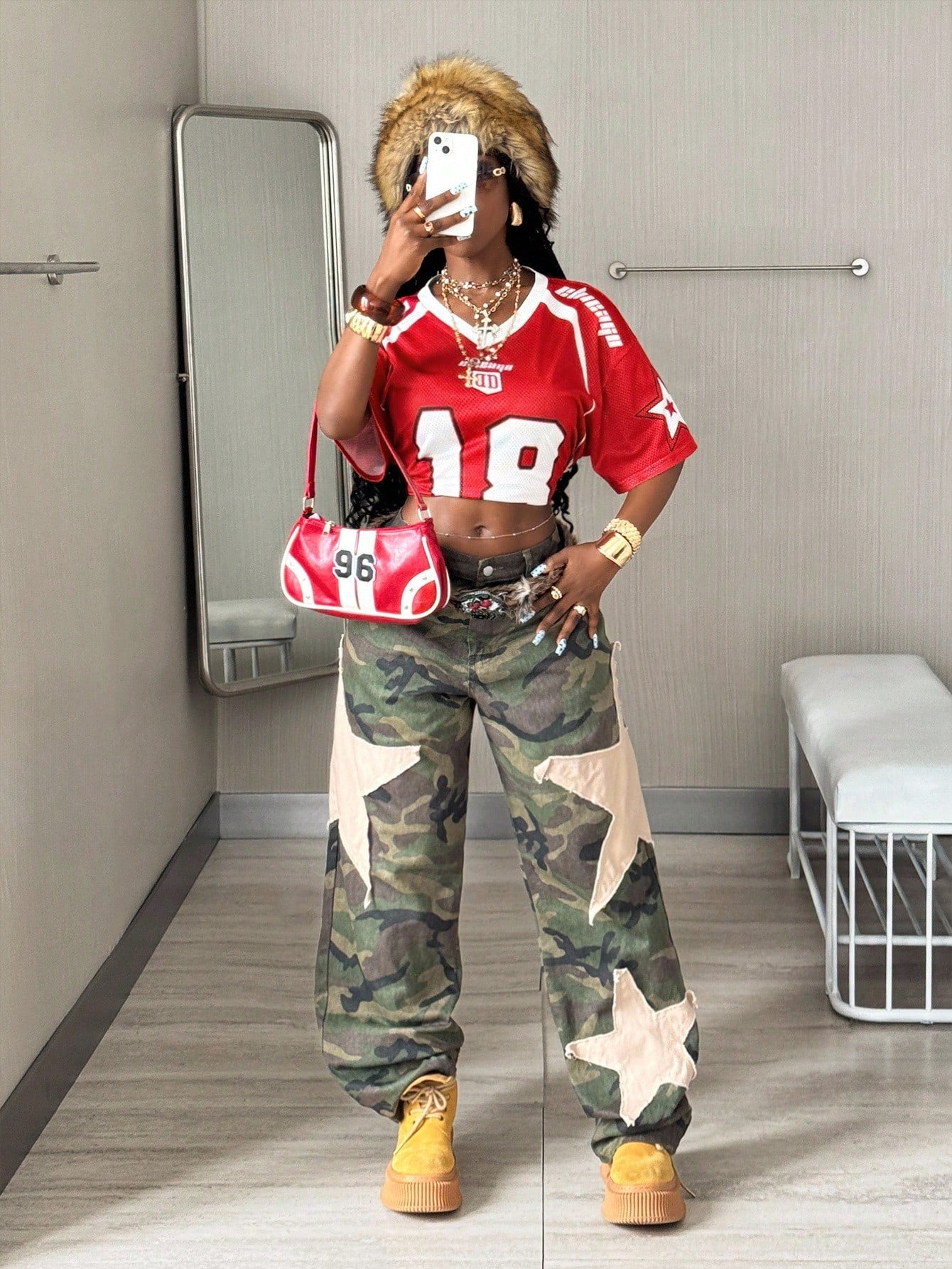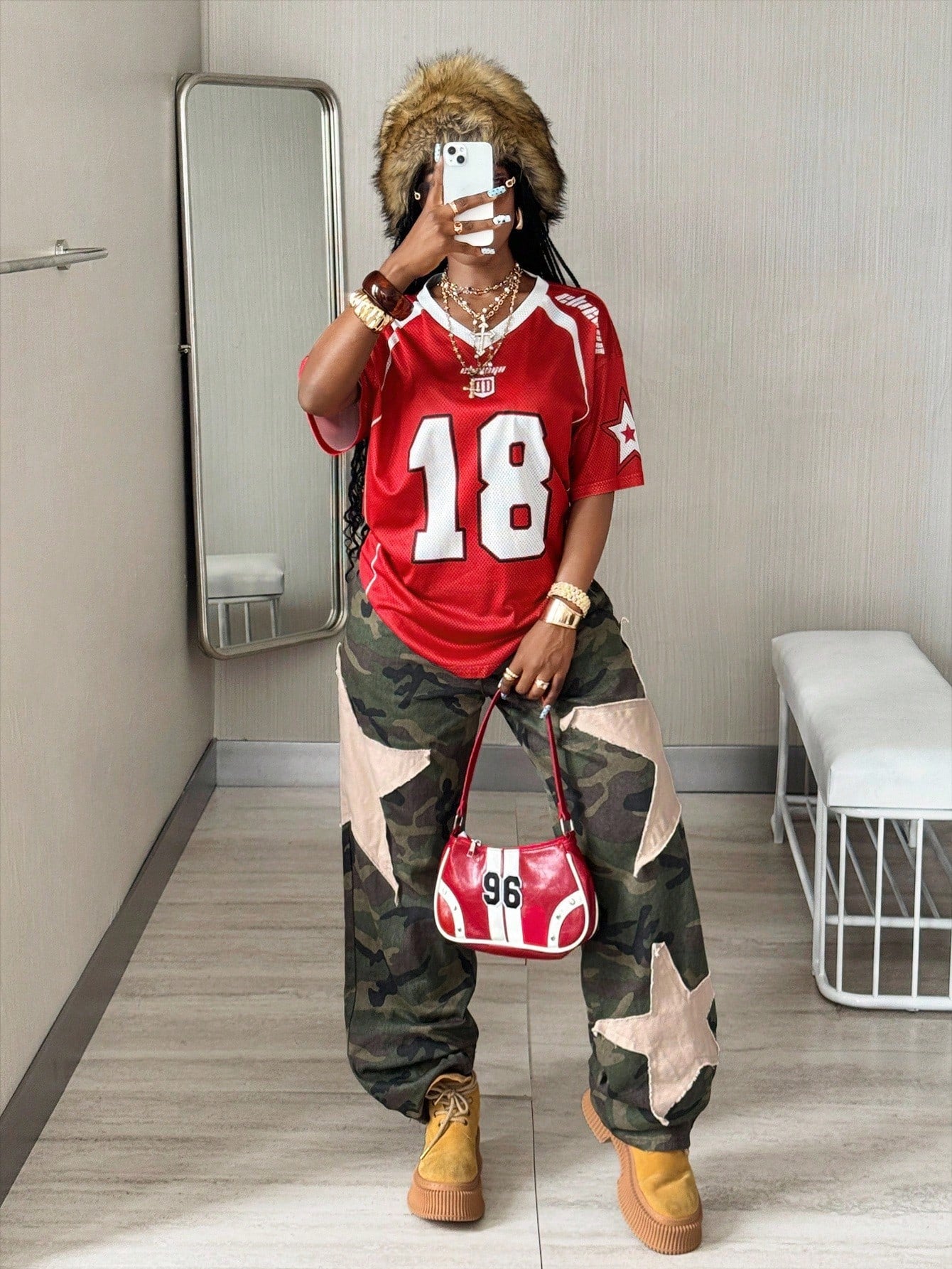 Women's Red Oversized Mesh Short Sleeve V-Neck Top Jersey