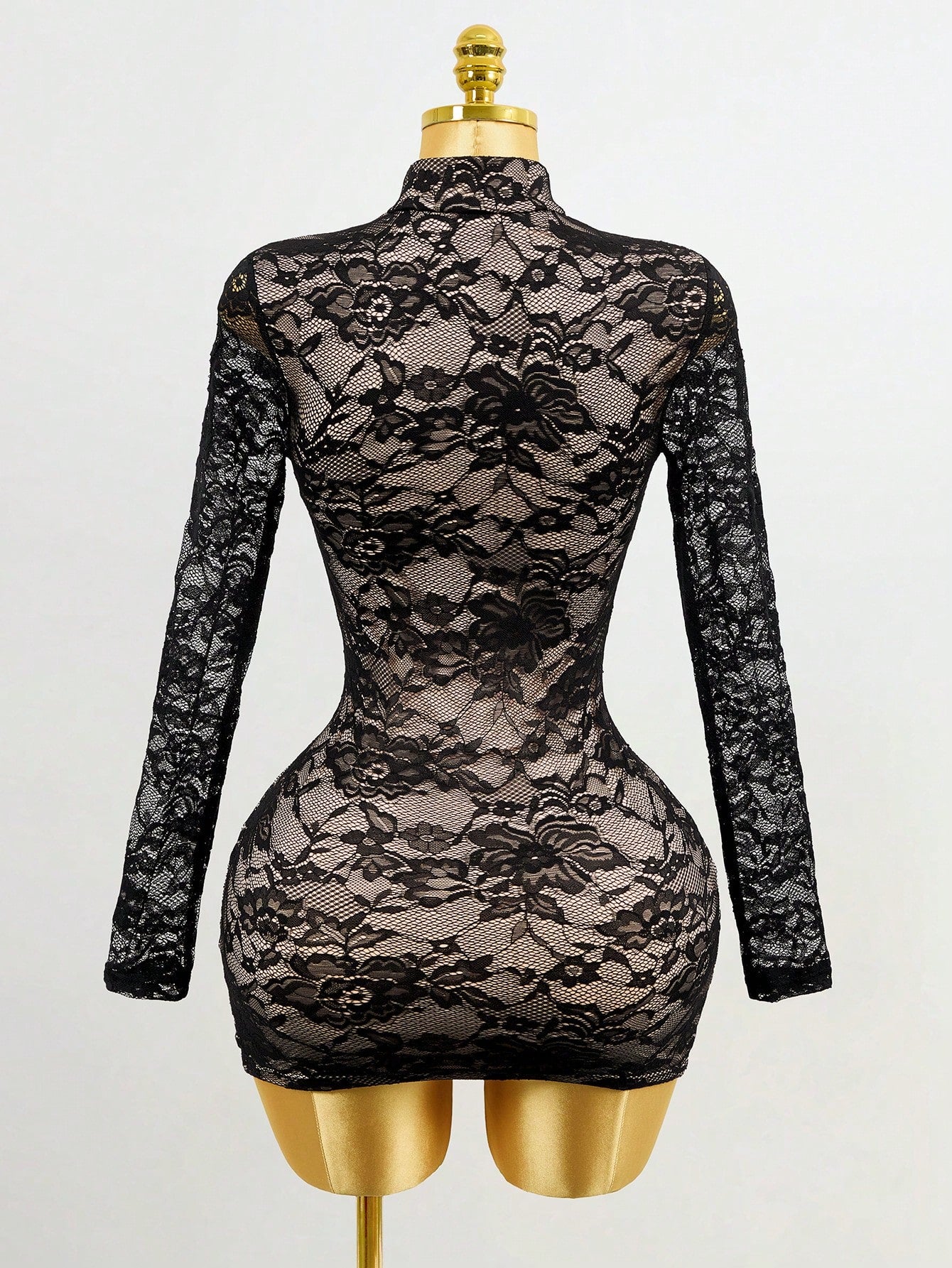Women's Sexy Black Mandarin Collar Bodycon Mini Dress