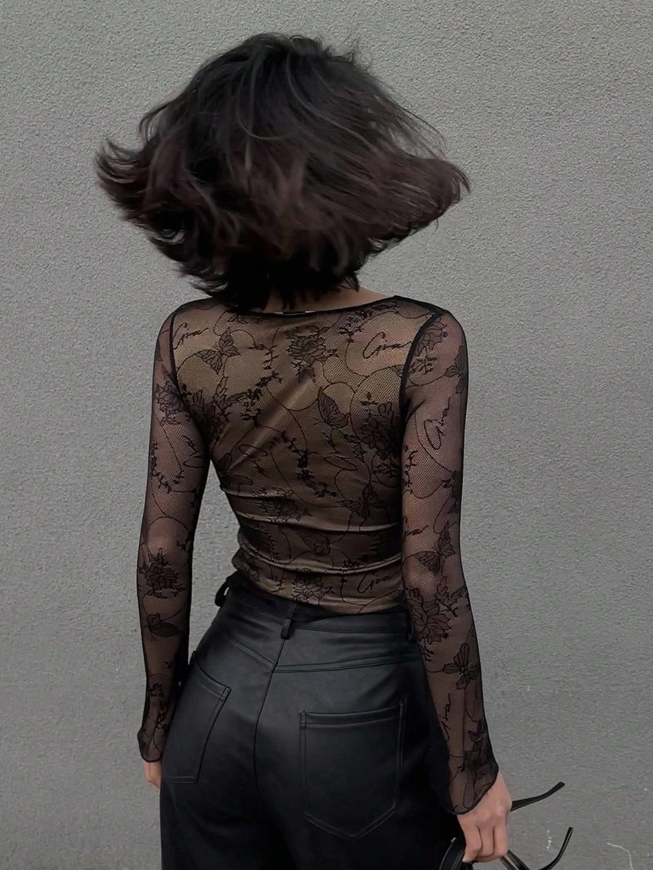 Women's V-Neck Lace Long Sleeve Bodycon Slim T-Shirt