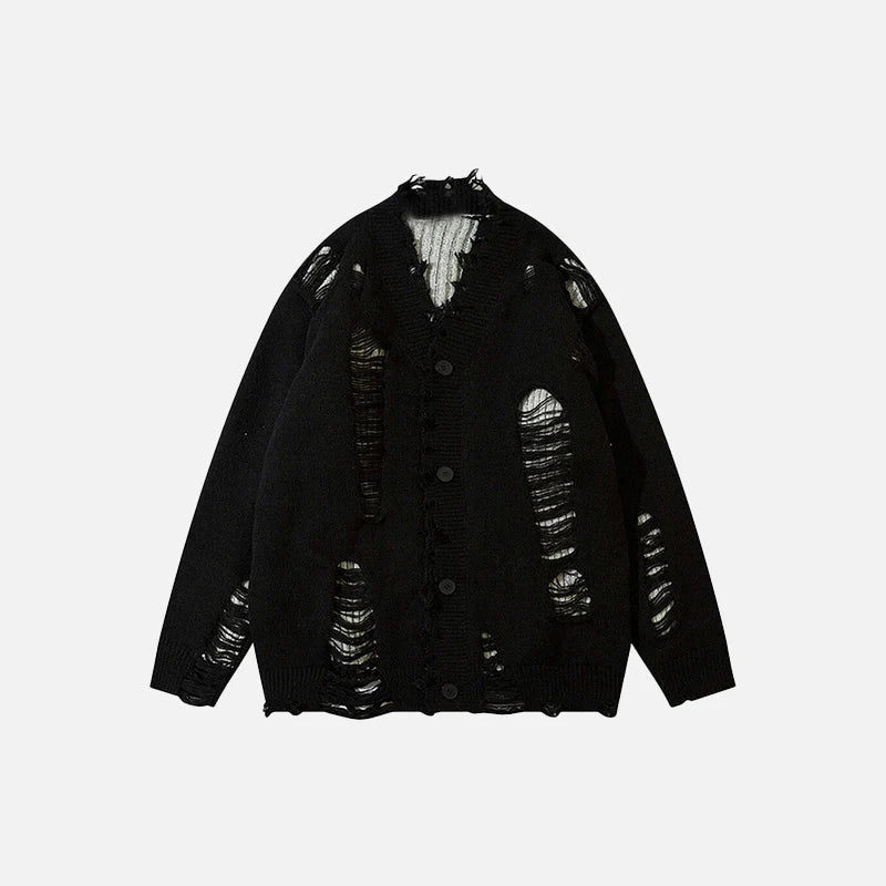 Y2K Ripped V-neck Knitted Cardigan Retro Edge Meets Modern Comfort